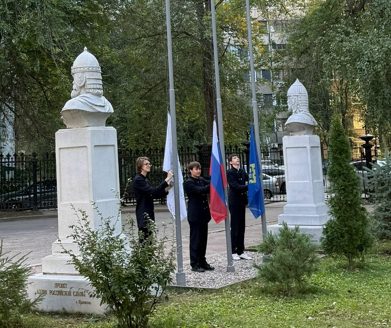 По окончании детской литургии в гимназическом храме на двунадесятые праздники и в начале четверти в традиции гимназии вынос (или поднятие) флагов России, города Тольятти, гимназии и исполнение всеми учащими и учащимися четырех гимнов: Святой Руси («Земле Русская»), России, Российской империи («Боже, Царя храни!») и гимназии. Лучшие ученики при этом держат флаги России, города Тольятти и гимназии. Подобная традиция существовала в дореволюционных российских гимназиях.
