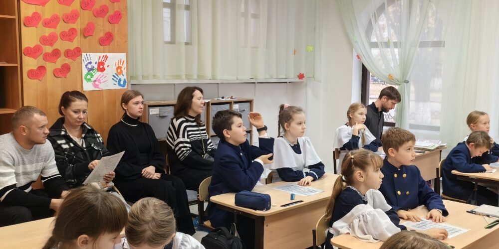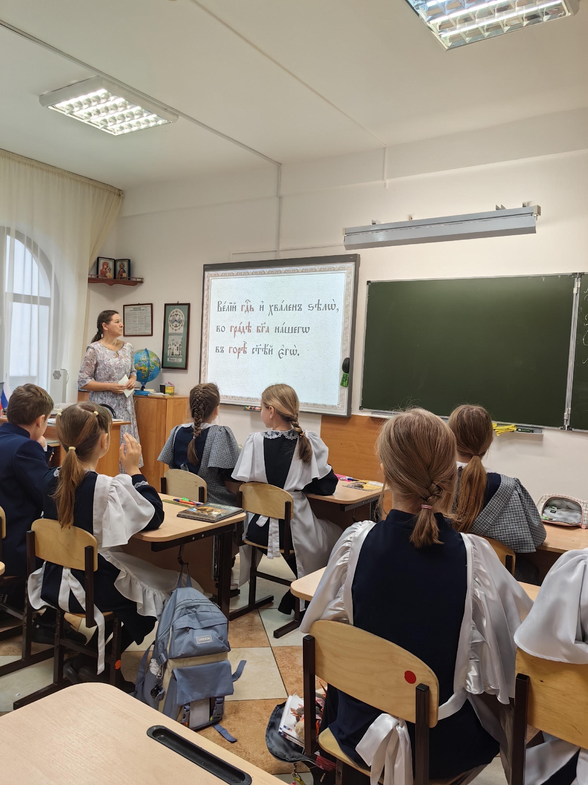 Открытый урок церковнославянского языка «Буква в Духе» прошёл в 4А классе. Сайдашева Наталья Алексеевна и юные гимназисты совершили увлекательное путешествие в мир славянской Азбуки. Святые Кирилл и Мефодий создали не просто инструмент для передачи письменной славянской речи, но и уникальный культурный код. В славянской Азбуке есть содержание, она содержит послание для нас, потомков древних славян. Ученики 4А на уроке успешно расшифровали это послание. Получилось следующее: «Азъ буки веде. Глаголь добро есте. Живите зело, земля, иже како люди, мыслите. Рцы слово твёрдо».