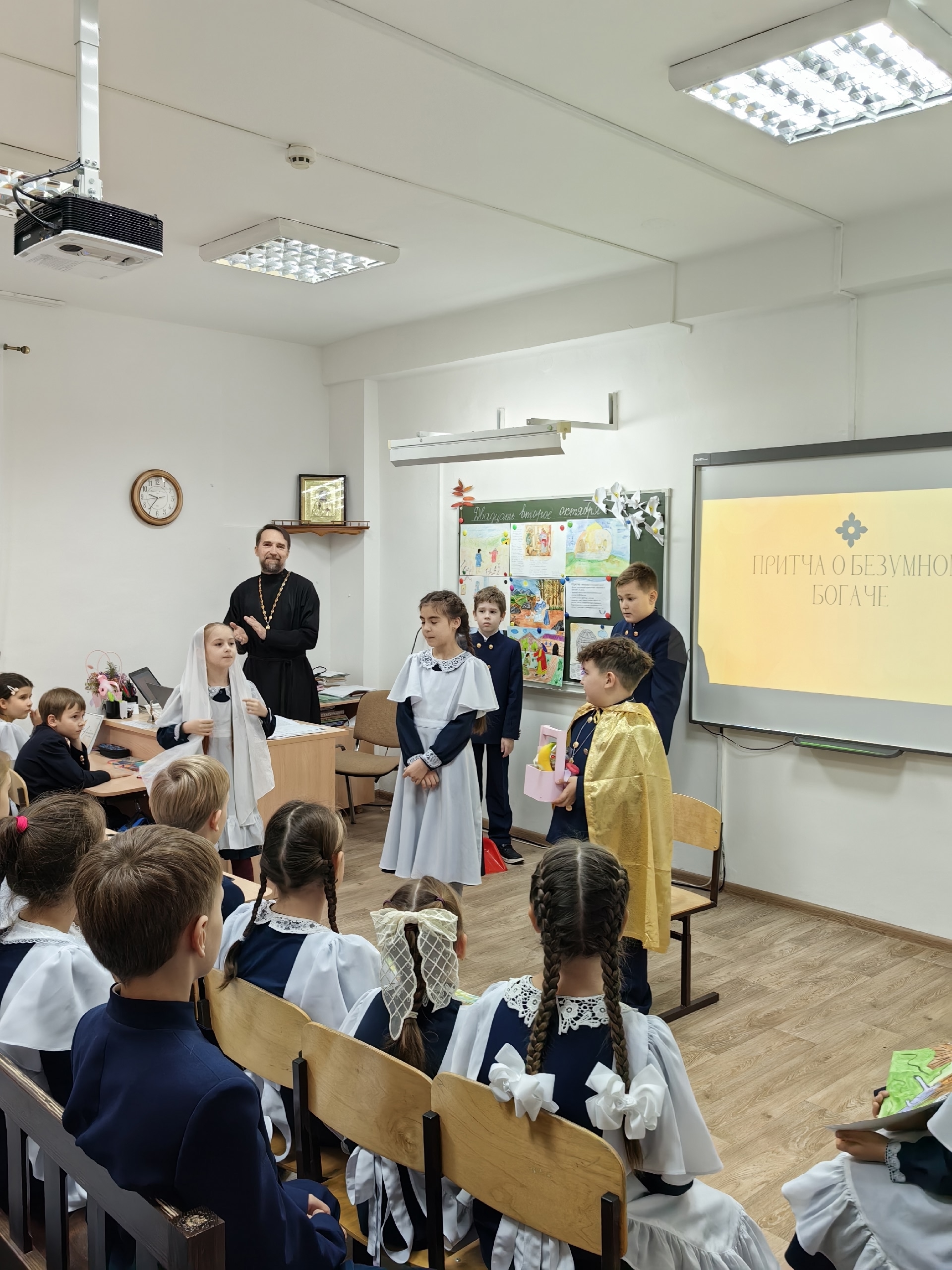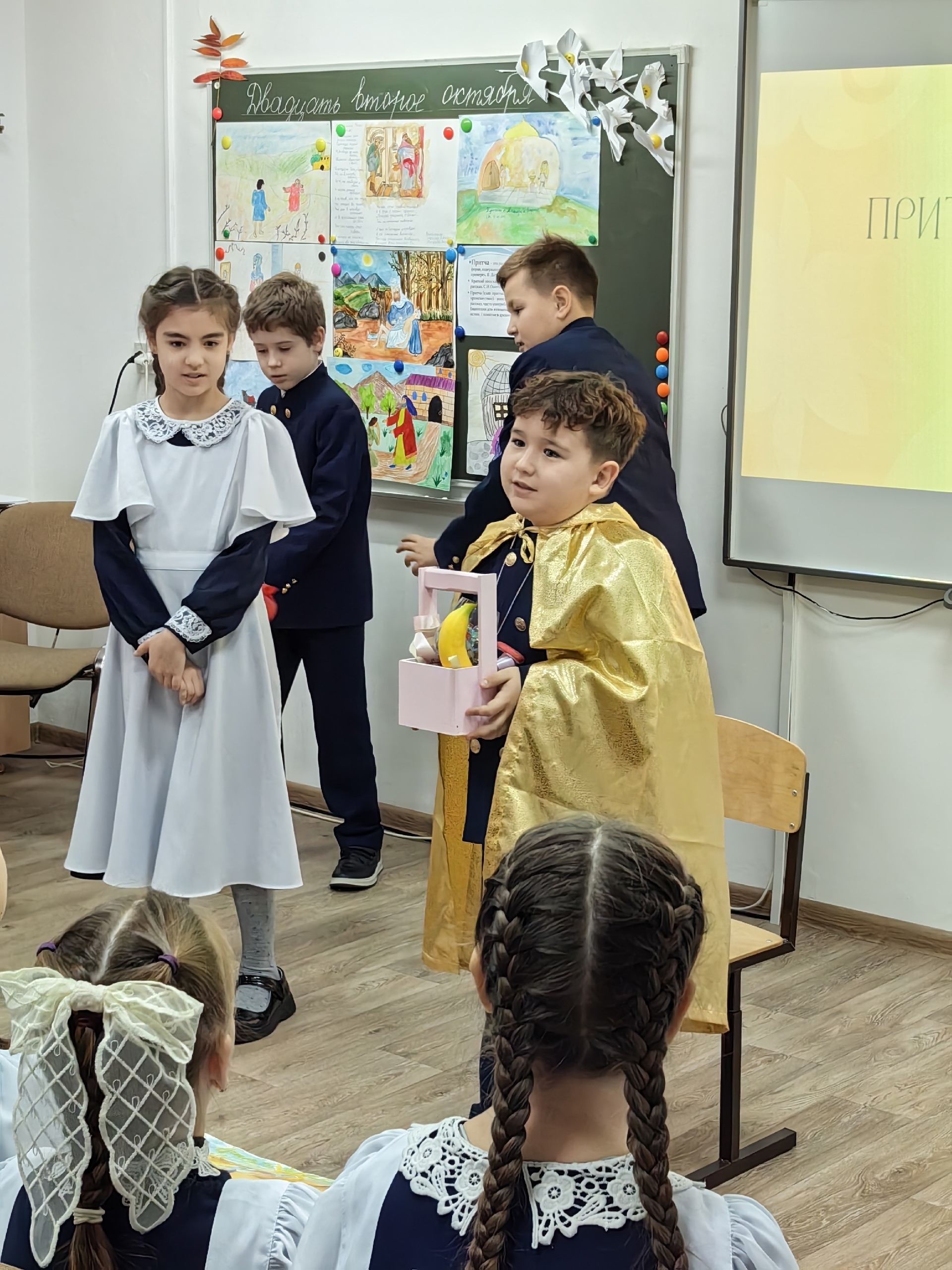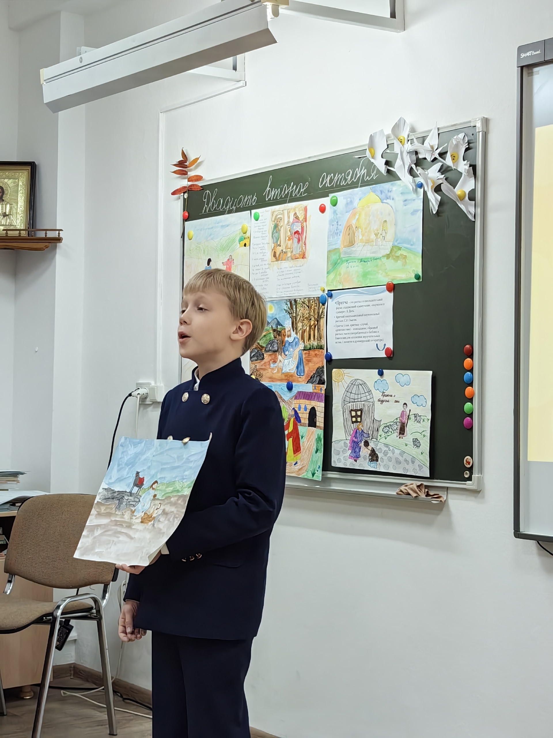 22 октября продолжились открытые мероприятия законоучительной кафедры. О. Алексей Зимин провел урок Закона Божия «Притчи Христовы» в 3А и в 3Б классах. Ребята подготовили инсценировки, рисунки, выразительное чтение стихотворений русских поэтов по притчам о блудном сыне, о милосердном самарянине, о мудрых и юродивых девах, о неразумном богаче. Третьеклассники не просто изучали вместе с законоучителем эти удивительные притчи, но и делали нравственные выводы о том, каким должен быть православный христианин, кто наш ближний, что такое милосердие и в чем сила покаяния. В завершении занятия на стадии рефлексии ребята ответили на вопросы по содержанию притчей Христовых. Урок получился интересный и душеполезный!