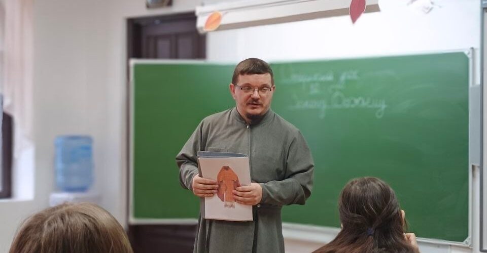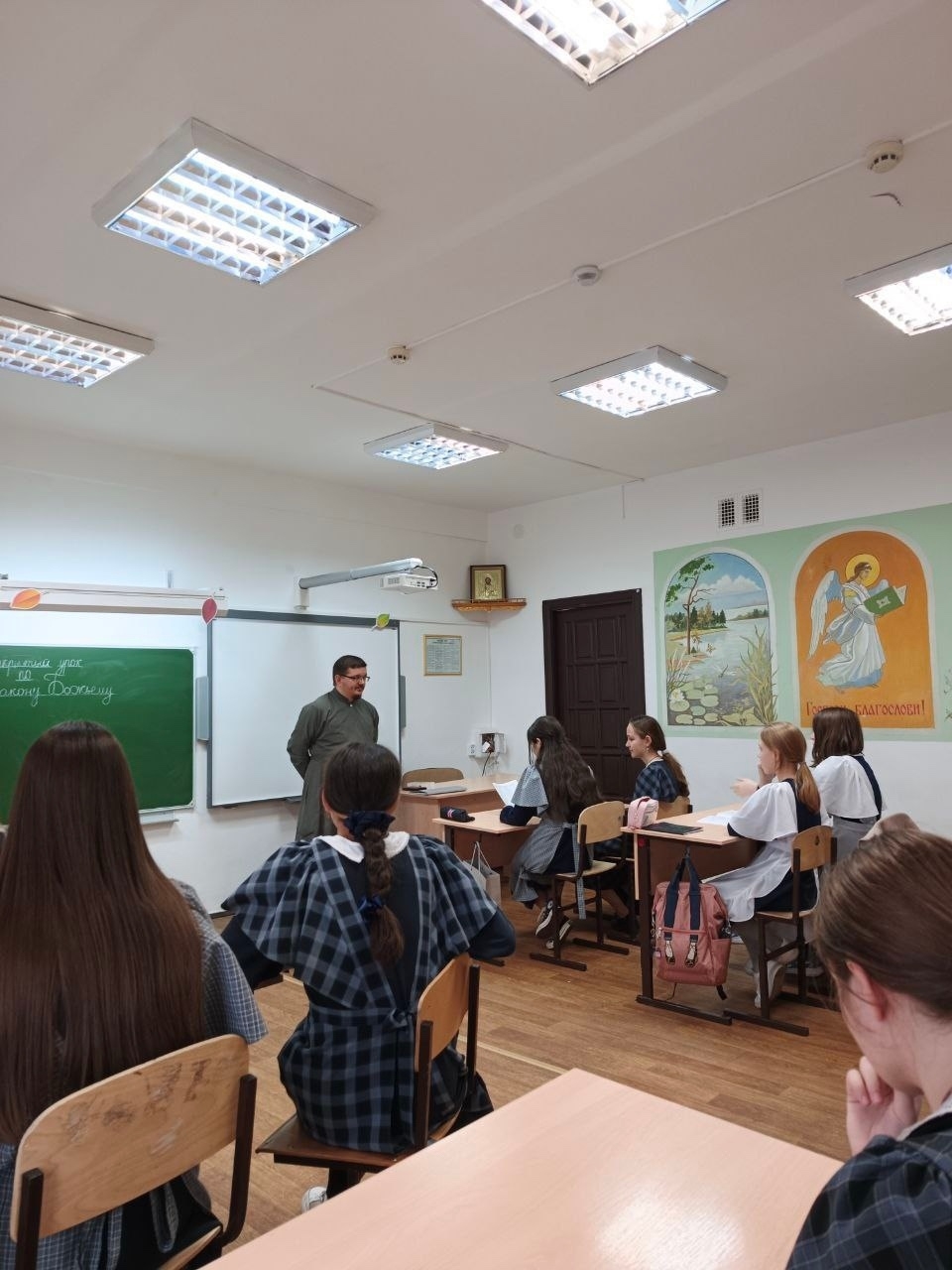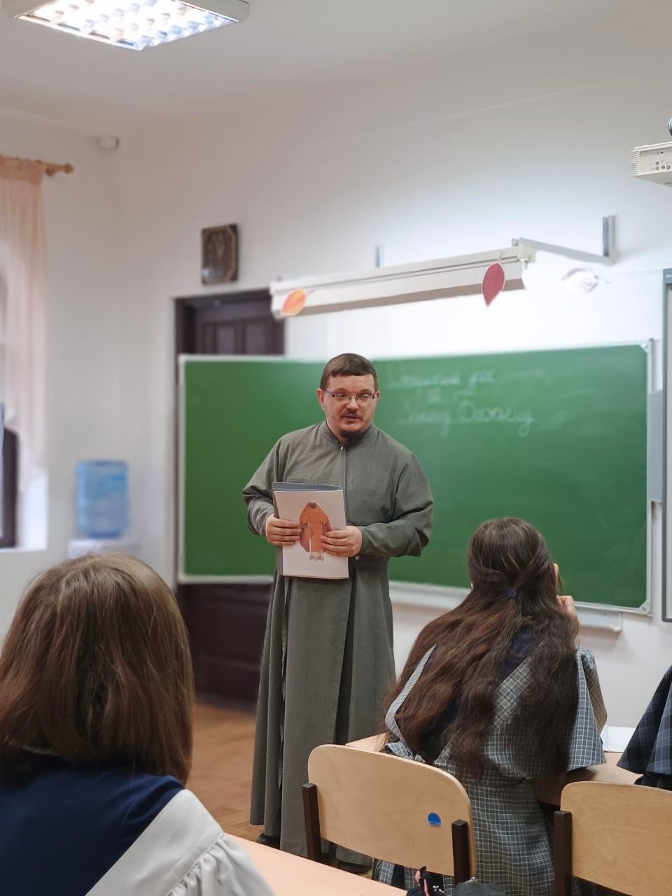 Учитель Закона Божия диакон Иоанн Хартов провел открытый урок в 7А и в 7Б классах по теме «Облачения священнослужителей».