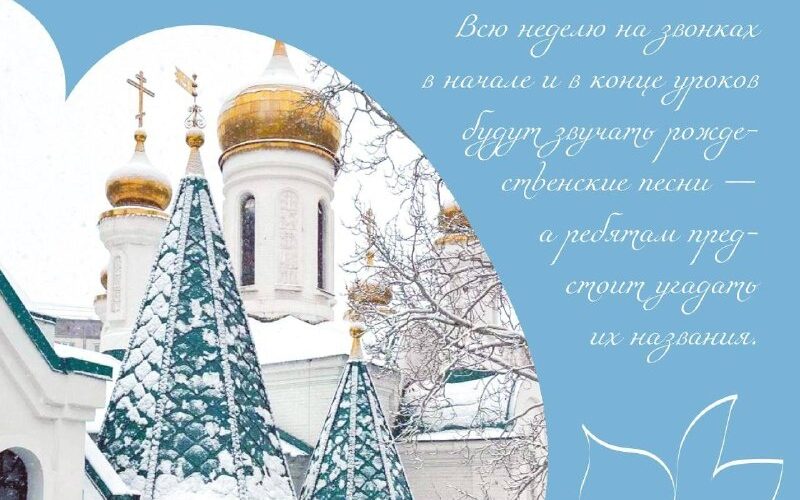 С 1 по 5 декабря на звонках в начале и в конце уроков звучали рождественские песни, по два произведения в день. У ребят была задача — угадать их названия, а затем сообщить свои ответы классным руководителям. 26 декабря мы подведём итоги и наградим ребят, которые правильно угадали минимум 2 рождественские песни.