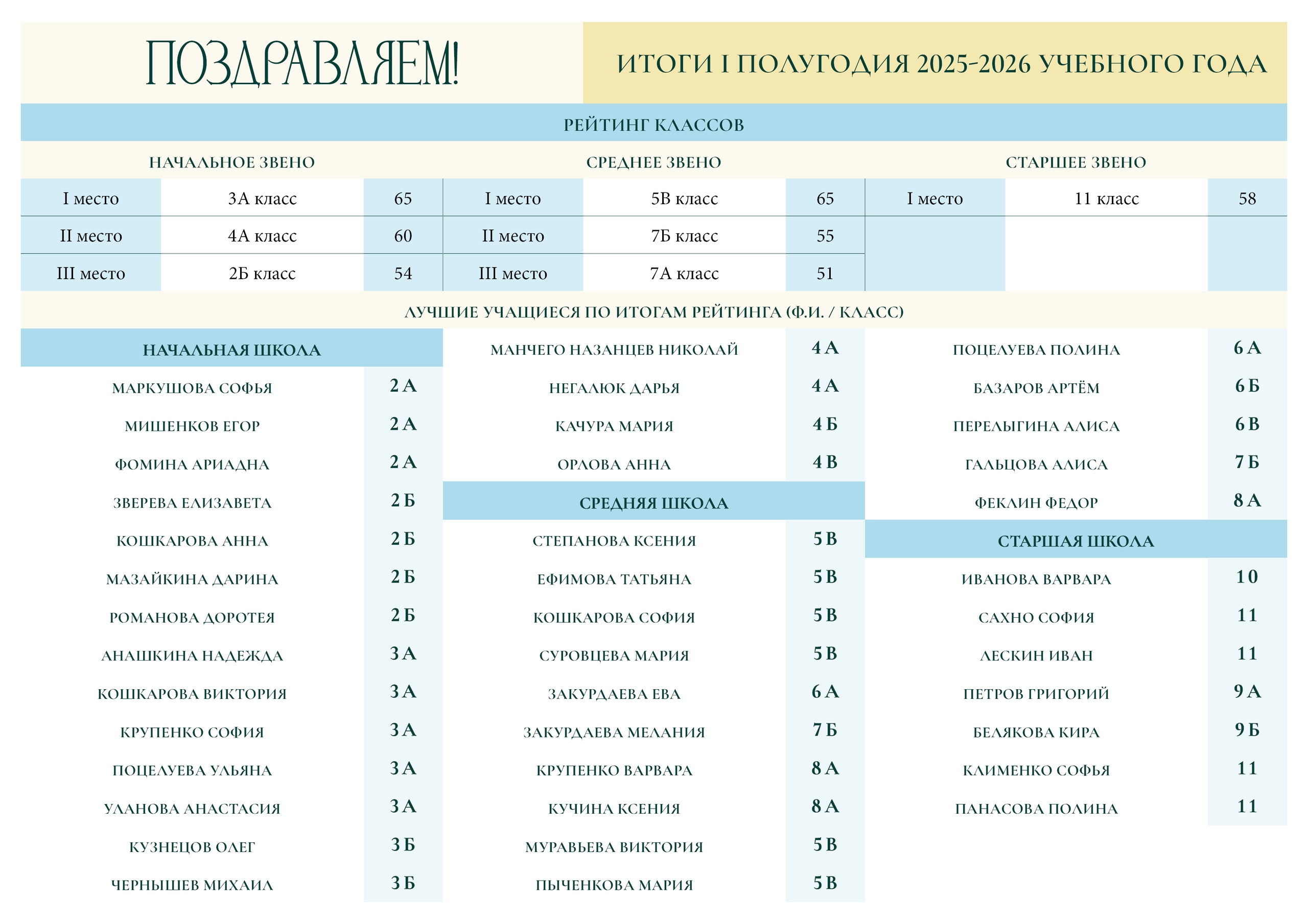 2. Рейтинг прилежания: соблюдение школьного порядка, регулярное участие в службах храма, активное вовлечение в школьную жизнь и помощь в организации мероприятий.