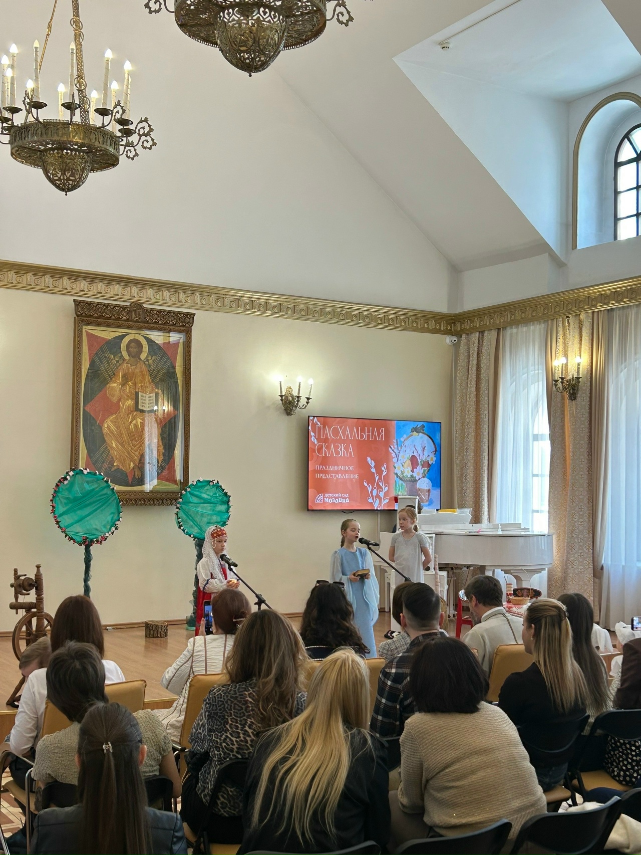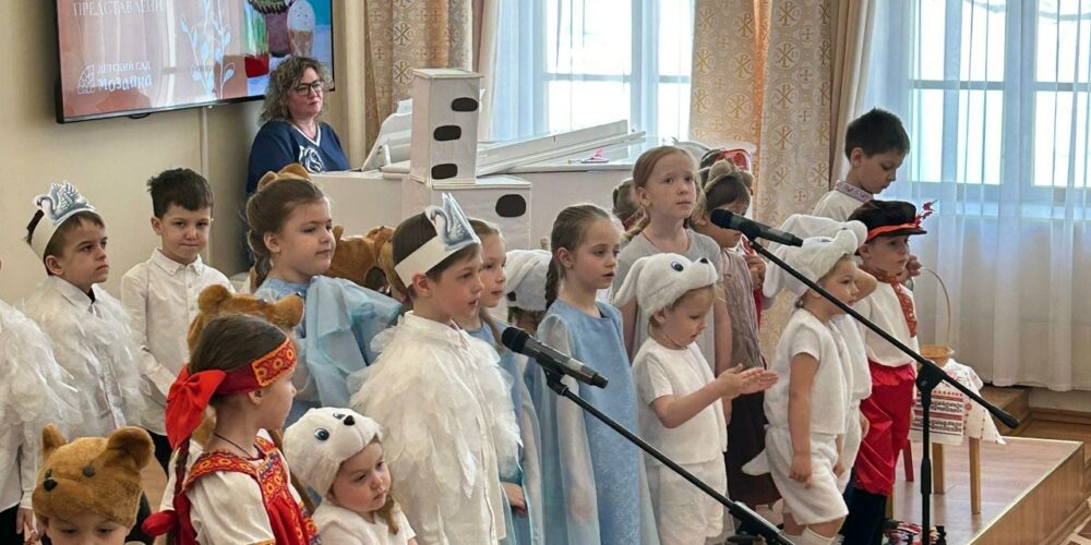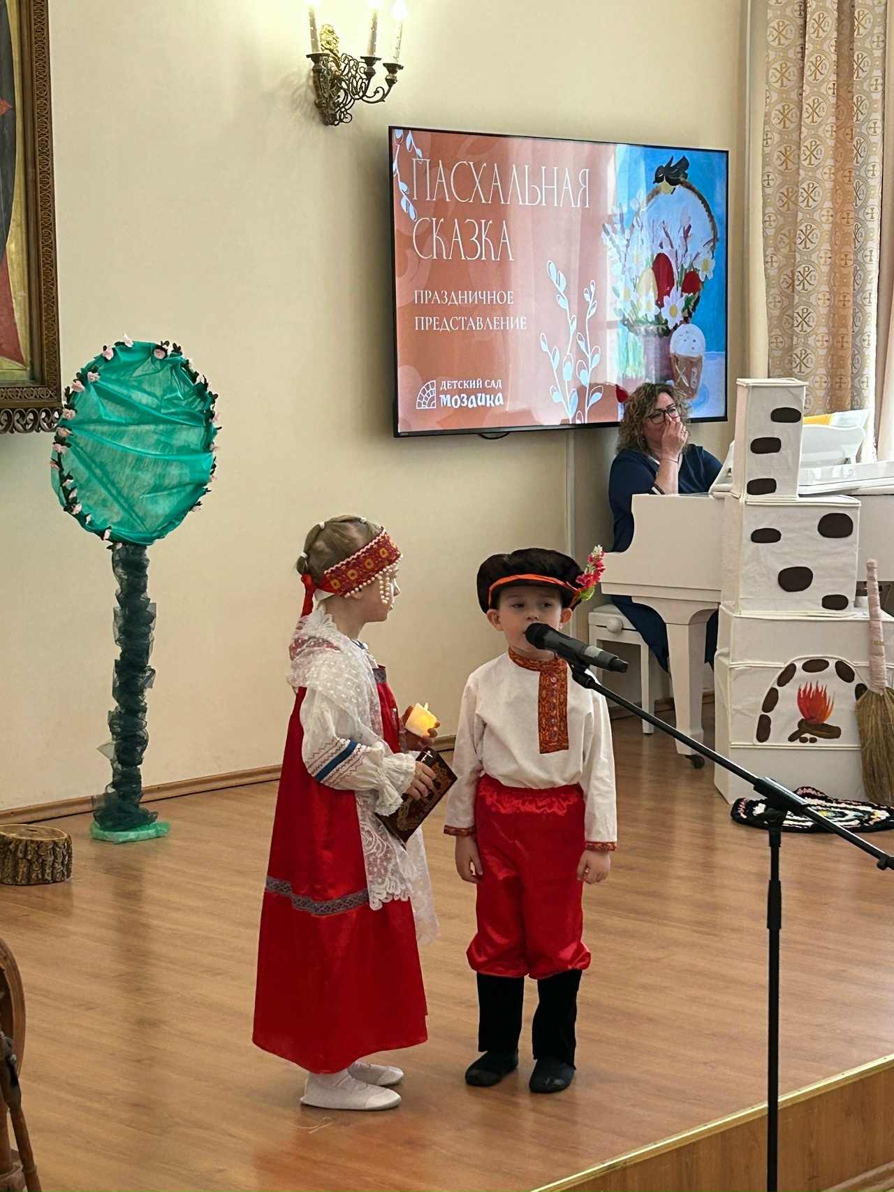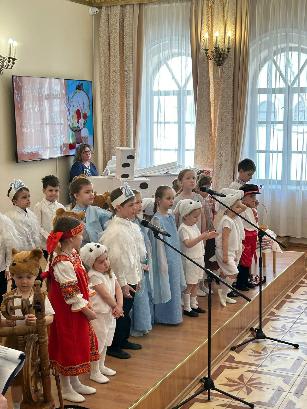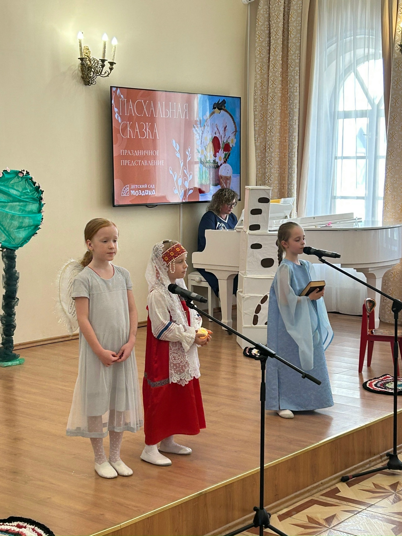 Сегодня в прогимназии «Мозаика» прошло пасхальное представление «Пасхальная сказка»Воспитанники групп «Подснежники», «Маргаритки» и «Колокольчики» подарили зрителям настоящий праздник души.Под звуки Баха, Генделя и Вивальди дети читали стихи, пели о Светлом Христовом Воскресении, водили хороводы и танцевали. А главное — напомнили всем нам о важном: о послушании, милосердии и молитве. Вместе с Аленушкой и Иванушкой зрители прошли через испытания, увидели Ангела и поняли, что доброта и покаяние всегда приводят домой.